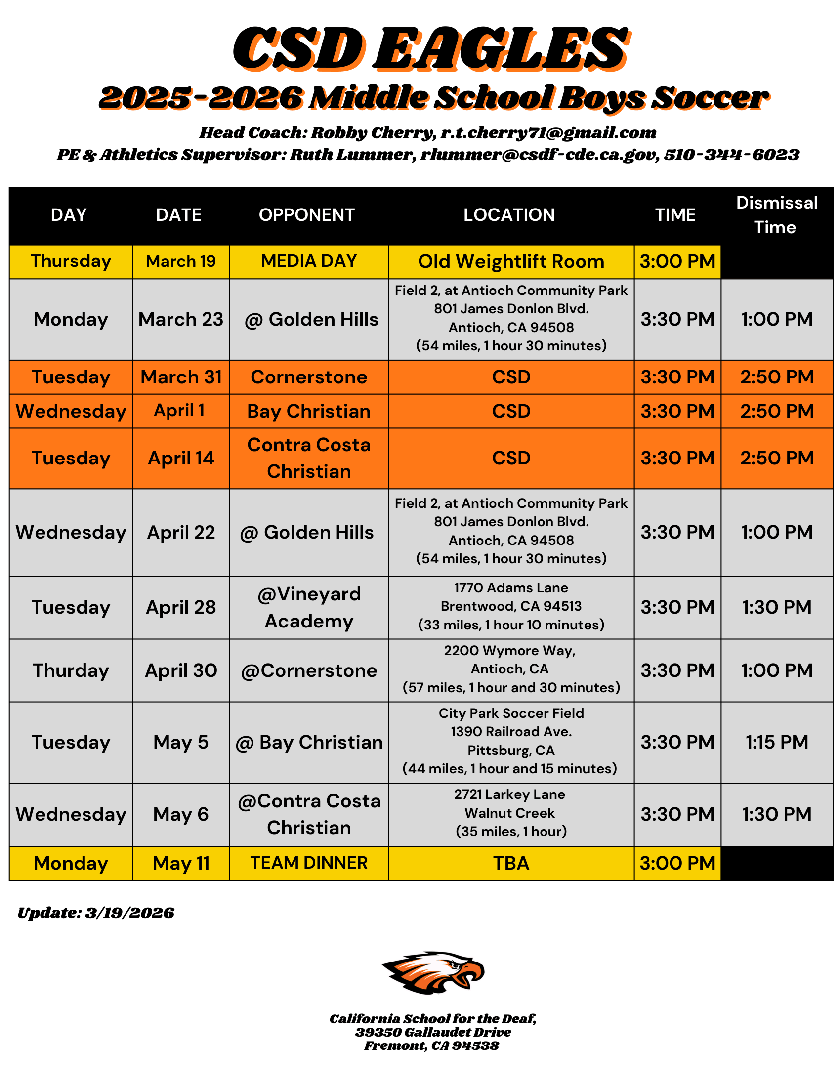 Middle School Sports : Spring 2026